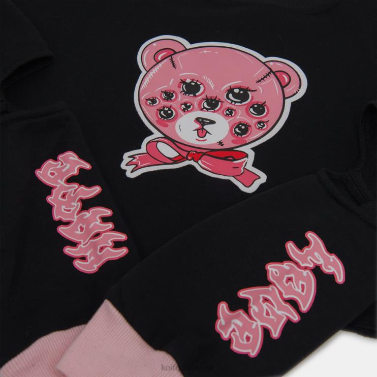 Geef je garderobe een dramatische upgrade met onze yami crop top. Deze zwarte cropped top heeft geribde manchetten, een yami-berenprint en een ronde halslijn, waardoor het de perfecte manier is om een beetje drama en scherpte aan je stijl toe te voegen. Bovendien is hij comfortabel genoeg om de hele dag te rocken! trek hem aan, trek de aandacht en maak je geen zorgen om terug te keren.