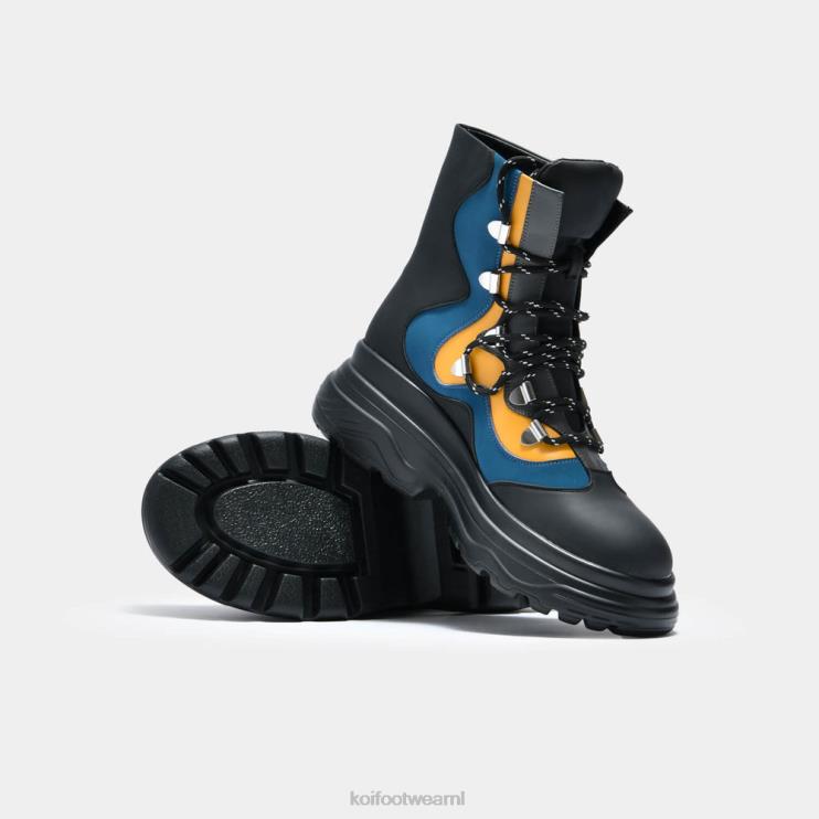een wandelschoen met een sportief en toch edgy tintje, deze tilt je schoenspel naar een geheel nieuw niveau. hier in een opvallend blauw en beige patroon.